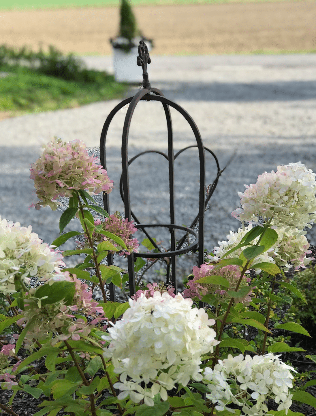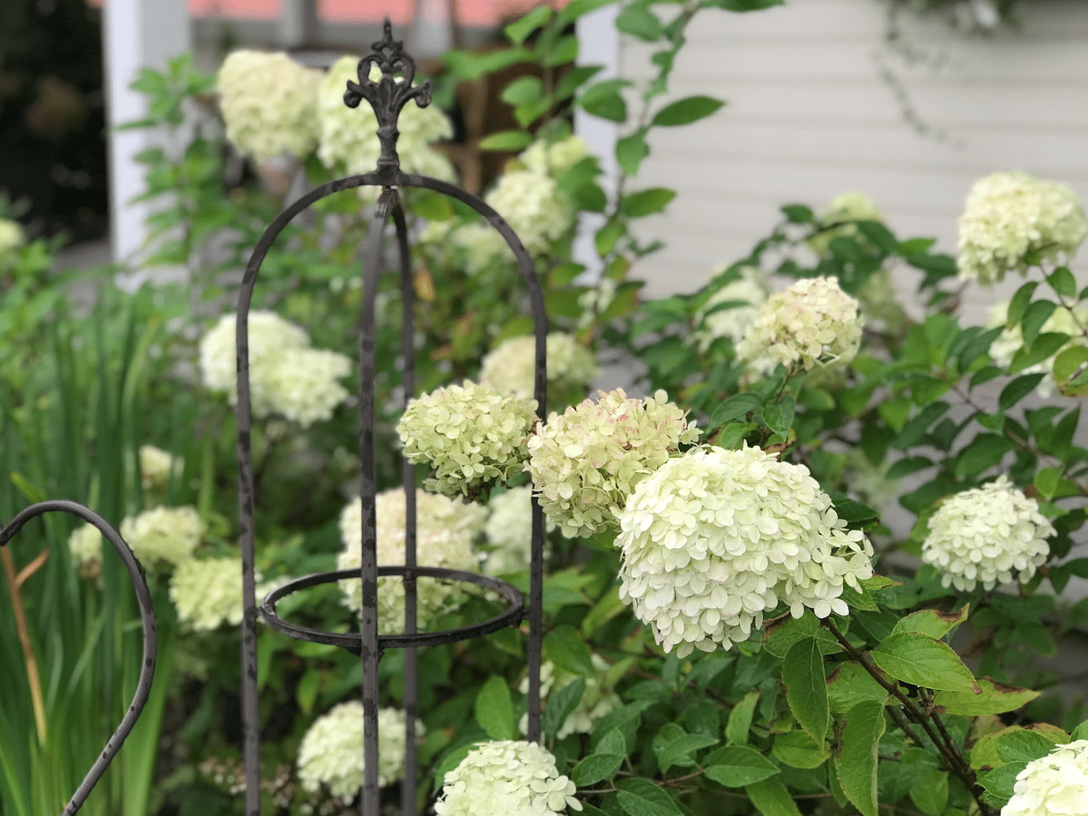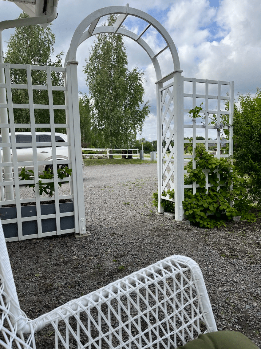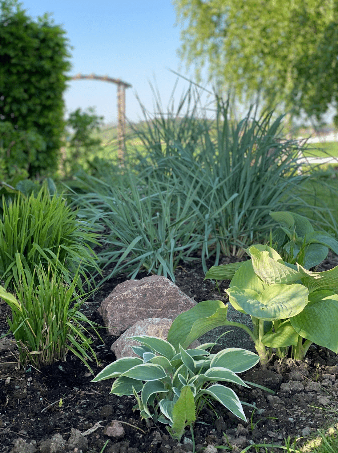 Frida på Hutchings Garden hjälpte oss både med idé och genomförande, att få till en mysig ombonad passage till entrén med en rundad rabatt invid grusgången. Den fungerar både som insynsskydd och har även gett rumskänsla till trädgården. Dessutom genialiskt att addera en portal och spaljé invid. Njuter av att sitta där på sommaren skyddad av grönskan. De vintergröna buskarna är dessutom fina året om. Kunde inte blivit bättre.
